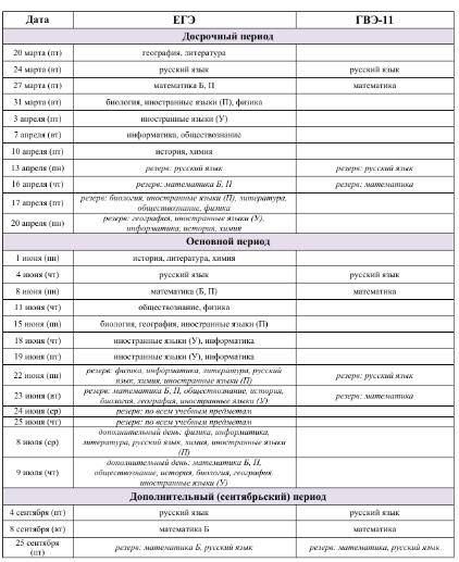 ГИА. Расписание экзаменов2026 - ЕГЭ 11 класс