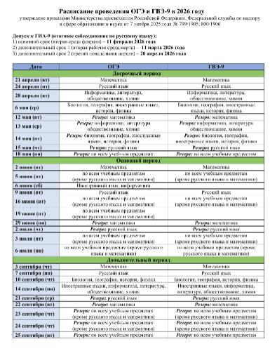 2026 Расписание ГИА в 9-х классах